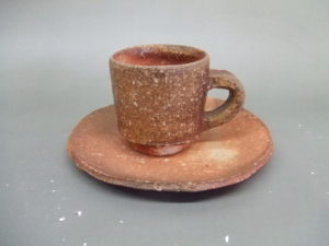 信楽 緋色スカーレット色コーヒー碗皿 好評です。