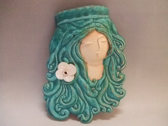 青空釉水女神掛花入れ (ha-167)