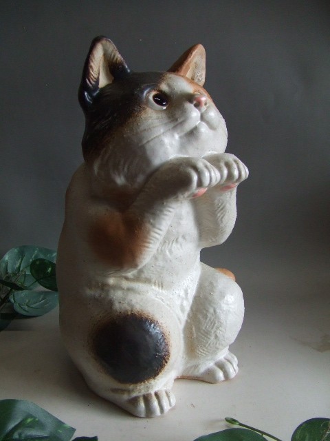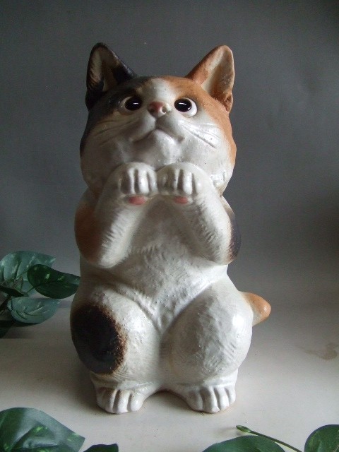 幸福三毛ねこ 猫ニャン ポーズとお目目がかわいい猫です とても可愛い表情の猫の置物です。 ねこは金運や幸運などを招いてくれる縁起物として人気があります。 お店やお部屋のインテリアにとてもお勧めです。 お気に入りの場所に、信楽焼きのネコを是非、飾っていただけ たらと思います。 愛嬌のある顔をしている猫ですので新築祝、結婚祝、 開店祝、 還暦祝、記念品などのご進物にも最適です。 付属品:専用箱入り ねこサイズ: w20×d20×h32cm 付属品:専用箱入り
