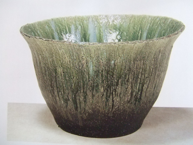 信楽の代表土と緑ガラス釉薬を使って作成しました。