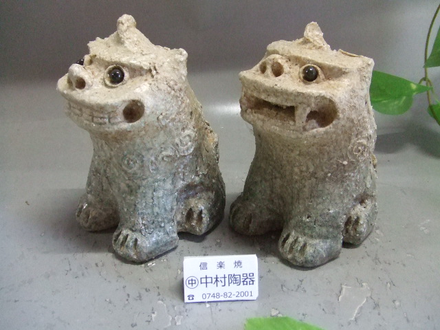 【手づくり商品】 口を開いたシーサーと閉じたシーサーで阿吽の呼吸と伝えられています 専用箱入り 1体のサイズ:横幅10:奥行14:高さ14センチ 【手づくり商品】ですので、顔の表情や作りに変更がある場合があります。ご了承願います。