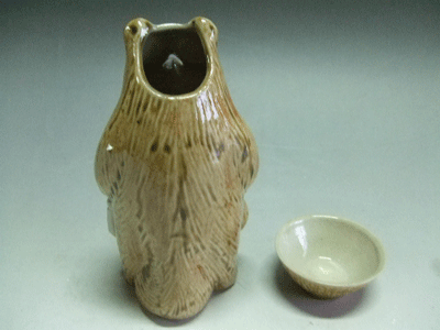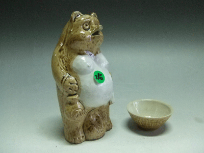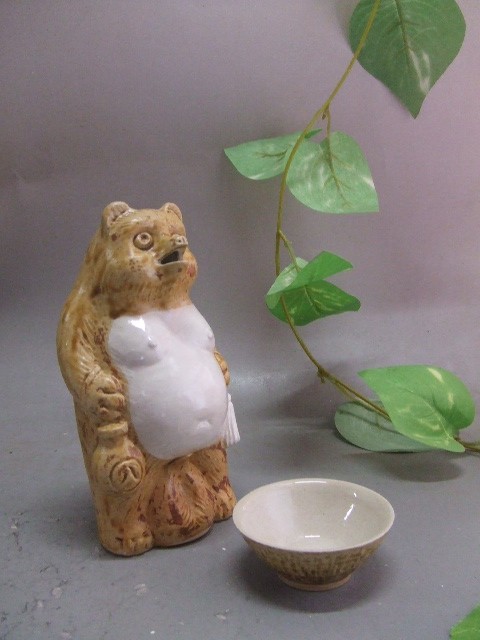 信楽焼きのたぬき徳利2合入り お酒は後方から入れて、口から注ぎます ぐい飲みはたぬきの傘を形どっています。 たぬきは福を招き入れる縁起物。 ましてや傘は悪事災難、家内安全のための縁起持ち物なのです。 無くてはならぬ傘。 たぬきはひとつひとつ、手づくり・手描き・手作業にて制作しておりますので、 顔の好みでのご購入はご遠慮願います。 たぬきサイズ:7×7×高さ15cm ぐい飲サイズ:直径6cm