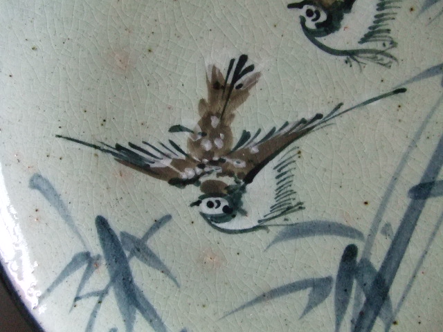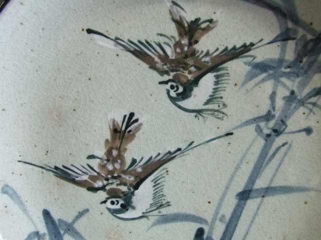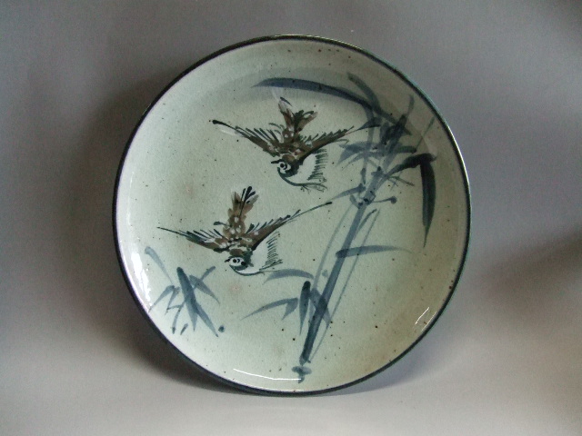 なぜ少なくなったのかとネットで調べてみると、スズメの好物であるヘエやアワ、ムギを生産する農家がすくなくなったとか、屋根瓦の下の人工物を利用して巣作りしていたのが、住宅の構造が変わり巣を作れなくなったなど、いろいろな説がありますが、日本の原風景であるスズメが身近にたくさんいてほしい思い出スズメの絵皿を今回見てください。
