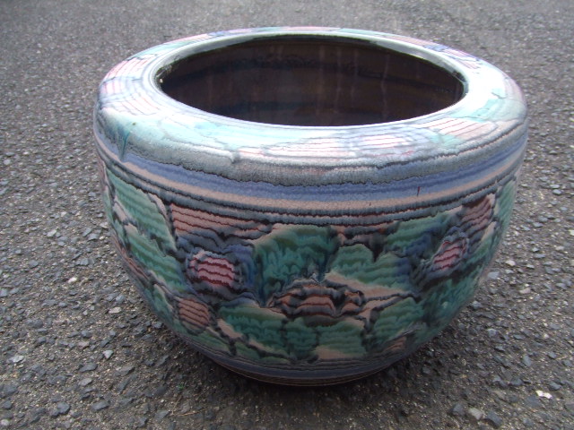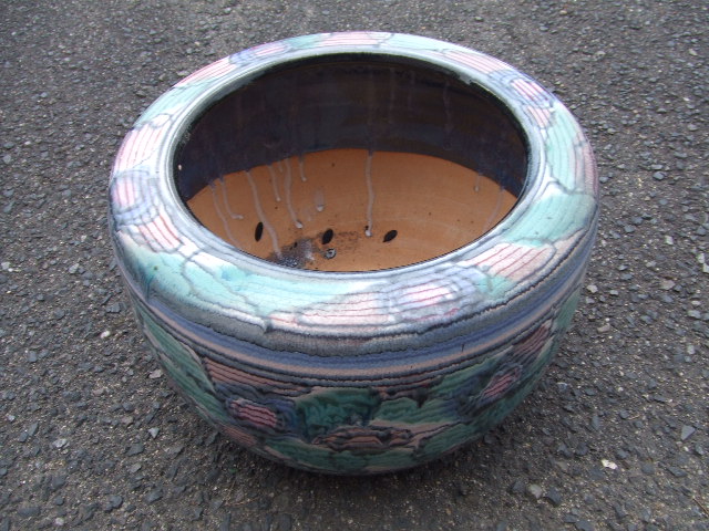 火鉢を絵付け釉薬で焼き上げました。 ホッとした心和むひとときを、信楽焼の火鉢でお楽しみください。 お花のプランター、水連鉢、水鉢、めだか鉢としてもご利用できます。 直径40センチ 高さ27センチ 火鉢の口径 27センチ 火鉢の中に入れる底瓦(陶器)、五徳(鉄)火箸(わらび) 木炭(日本製樫炭)も用意いたしておりますのでご用命ください。