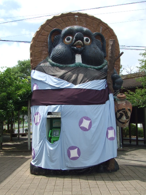 信楽駅前の大狸 ゆかたに変身