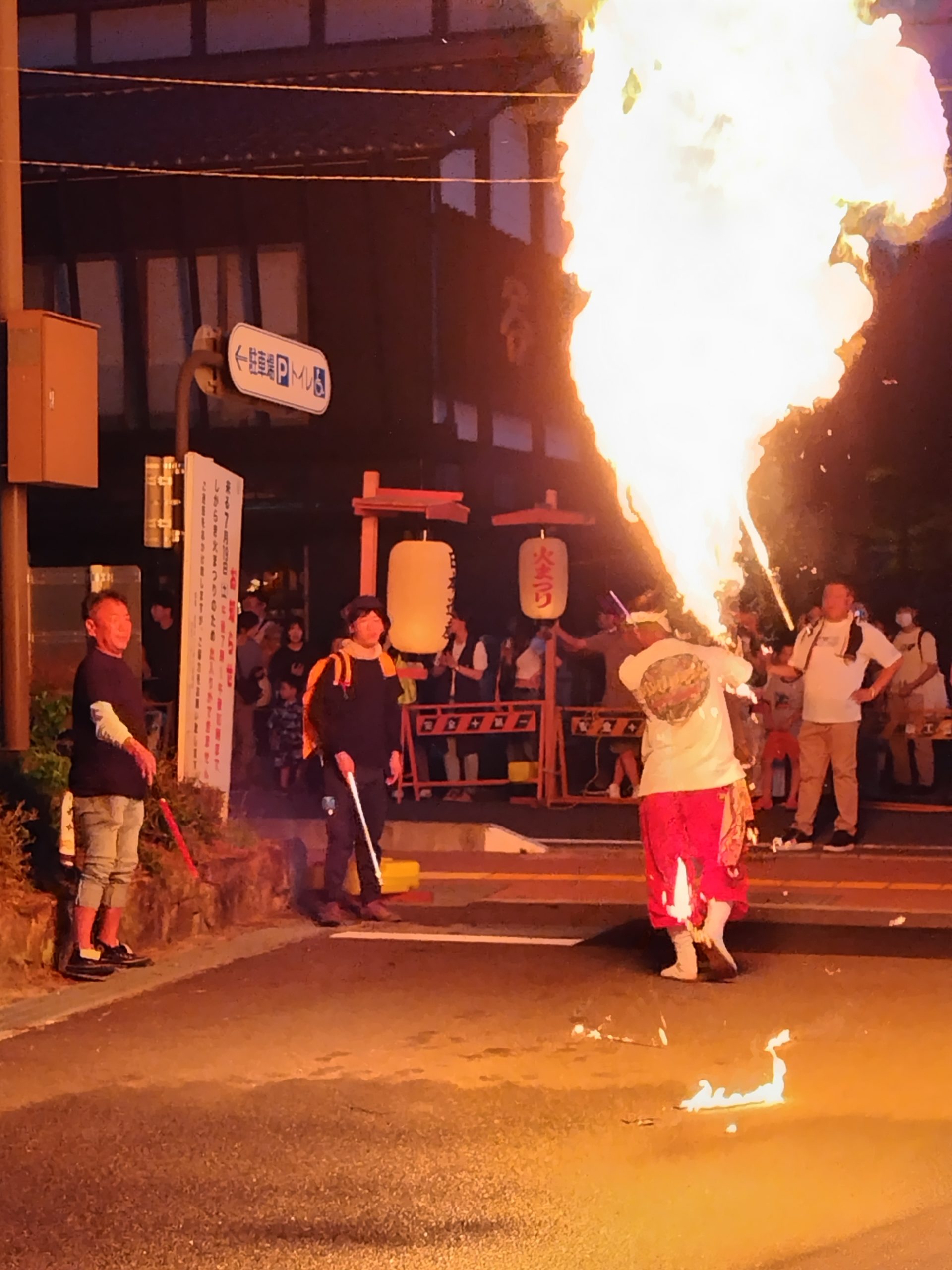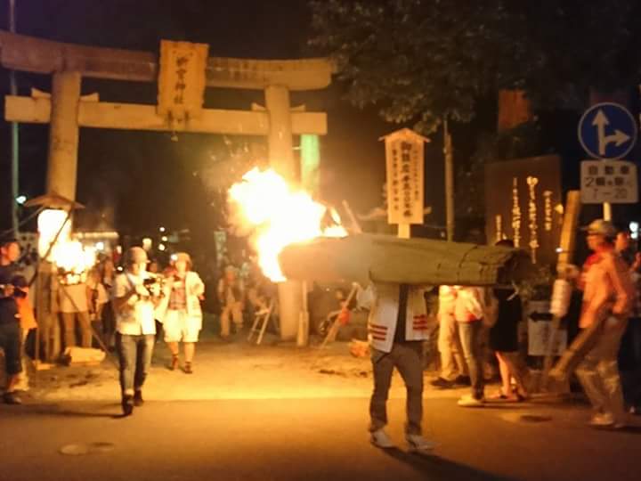 松明奉納と大花火大会 当店の