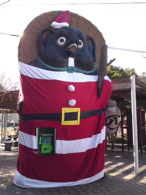 信楽 駅前巨大狸が ”サンタ
