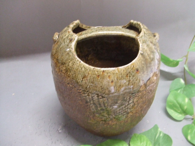 信楽釉蔓付花入れ