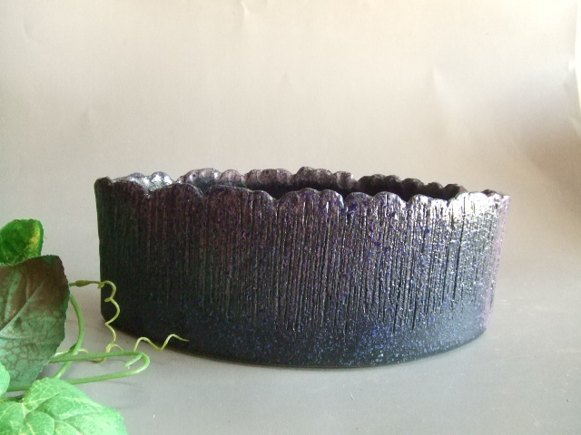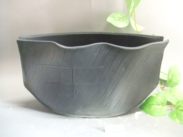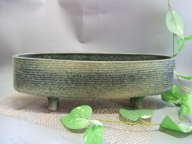 楕円焼き締め水盤(18号)